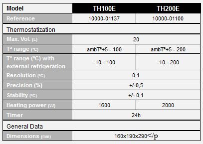 Immersion thermostat controlled by microprocessor, with high precision Pt100 sensor; Digital Display LCD backlighted showing the selected and actual temperature. Membrane push-button control. Pump for homogenization (6L/min). Motor with 4 levels of power (max. pressure 200mbar). Thermostatization at maximum temperature of maximum 20L. Double safety thermostat. Memory of the last settings. Attachable to the tank through a clamp and finger screw. Minimum high of the tank: 14cm. Water drainage faucet and handles for a easy transport.
