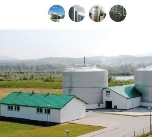 Our plant is composed by a Stainless steel silos, where the aerobic and anaerobic processes are performed and a smaller silo for additional aeration of the sludge.