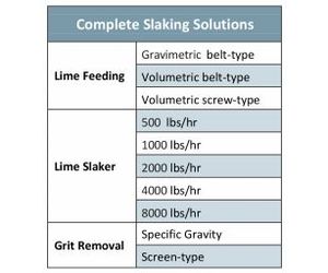 Lime slaking systems require more than just the slaker. We offer complete solutions including lime feeding and grit removal technologies which are an integral part of the lime slaking process. Our lime feeding technologies include gravimetric or volumetric belt-type and screw-type systems. Our grit removal technologies include specific gravity classification and screen-type systems.