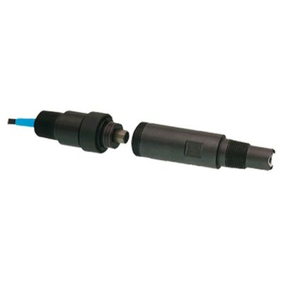 The sensor is housed in a chemically resistant, graphite filled Ryton® with Viton® O-Rings. The graphite filled Ryton body is used as a solution ground. The electrode tip is constructed in a unique Tuff Tip® guarded tip design with a Magna-Sens® peripheral ceramic reference junction. The Magna-Sens reference junction provides longer life in harsh, dirty applications and in process solutions containing a high solid content. It is also superior in applications such as lime slurry waste treatment, paper machine headbox and pigment / dye applications. The reference does not require electrolyte replenishment during the life of the electrode.