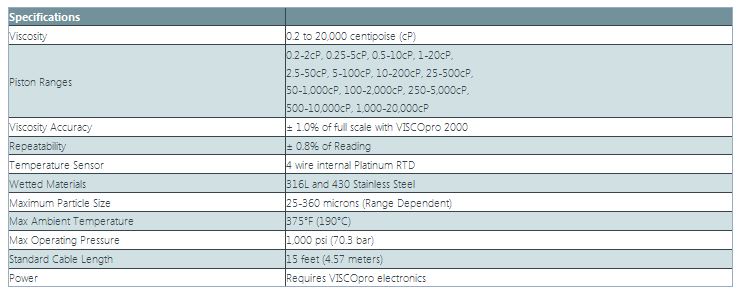- Accuracy: ± 1.0% of full scale with VISCOpro 2000