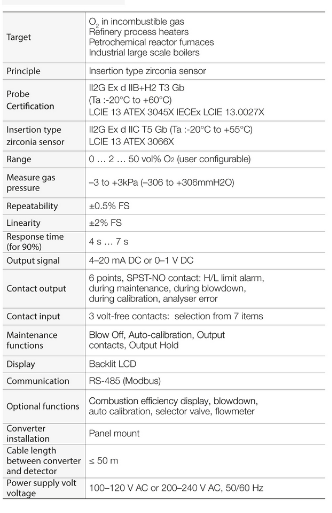 The oxygen measurement enables the control of burner fuel/air ratios to ensure combustion efficiency and process safety. Fuji Electric O2 Analyser is adapted to be installed in hazardous areas and to withstand critical environments as: