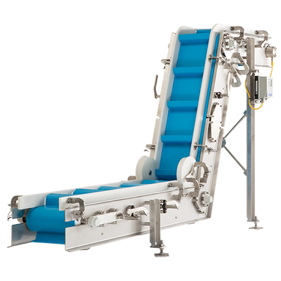 Frazier & Son’s new line of Incline Conveyors are designed for high-end food and packaging applications. These robust stainless steel/sanitary constructed conveyors are designed with innovative quick release fold-out side boards and belt lifters to raise the belt from the frame for quick wash down without tools.