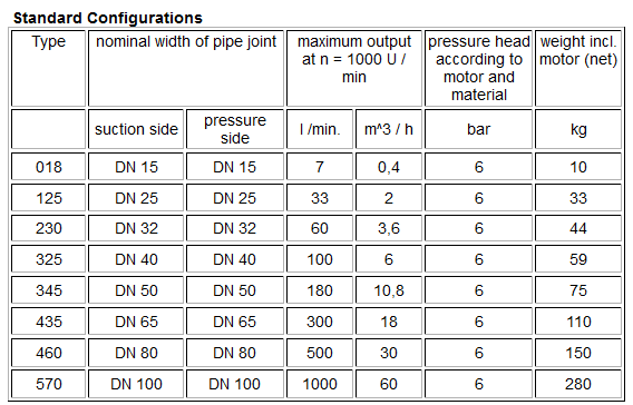 - net output 0.4 m3/h to 60 m3/h (1.75 U.S.g.p.m - 262 U.S.g.p.m.)