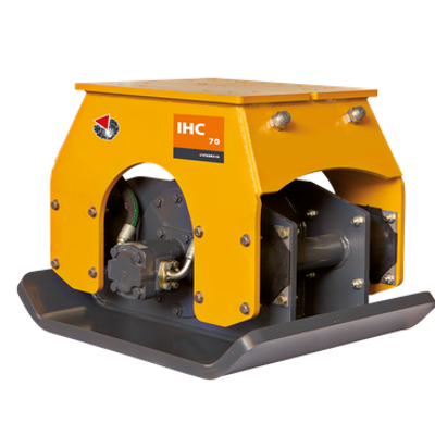 Indeco IHC compactors combine high compaction with fast turnaround times. They are a very efficient replacement both for traditional risky and tiring manual equipment and for self-propelled rollers, which are at great risk of rollover during slope applications. Compaction is achieved by applying both the dynamic force of a hydraulically-driven vibration system and the static weight of the carrier boom to the thick steel baseplate of the compactor. Of course, the dynamic forces have to be powerful enough to vibrate the steel baseplate.