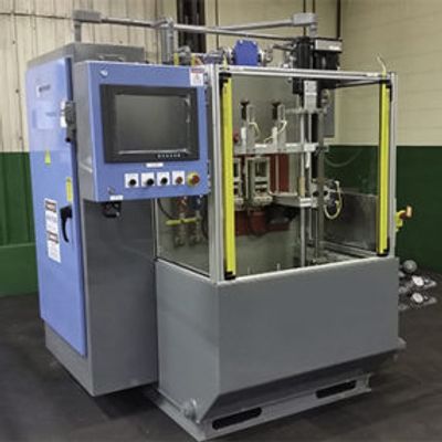 Modern`s Induction Hardening machines can be configured as a single or dual spindle, vertical scanning system for hardening or tempering a wide variety of parts. It`s equipped with quick disconnects to allow for faster tear down and set -up times. The variable frequency capability makes this machine ideal for meeting the stringent requirements of wrought alloys or even the toughest powdered metal profiles and case depth requirements.