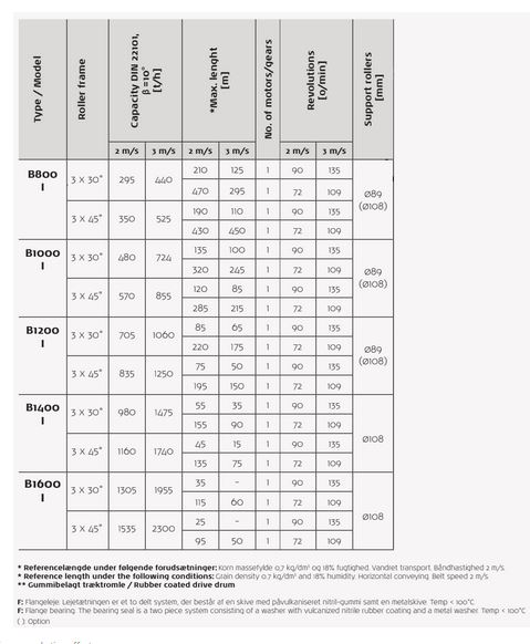 our belt conveyors can be supplied with oil-resistant belt, capacity regulation, automatic tensioning, spot filter, wire-operated emergency shutdown, reversible equipment, throw-off carriage with motor drive and drive on all four wheels. The throw-off carriage can be supplied with motor operated 2 or 3-way valve. The belt conveyor is constructed in preparation for flexible use. More inlets can be mounted and there is a possibility of mounting the belt conveyor under the intake pit as well as suspend it as movable, traversing or longitudinal conveyor.