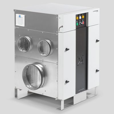 Flexible all-rounder with 177 kg / 24h dehumidification performance for a variety of industrial fields of application. Keeping humidity perfectly under control. The maintenance-friendly desiccant dehumidifier TTR 1400 not only guarantees high dehumidification levels even at very low dew points – with its stainless steel housing and an electrical control box in IP53 design, the corrosion-resistant TTR 1400 even withstands adverse operational environments and is therefore ideally suited for a variety of dry keeping tasks or the production of dry air in the chemical, pharmaceutical and Food industry as well as in the sector of mechanical engineering, but also to protect machines, inventory and buildings from corrosion, condensation and mould formation, for example in water processing facilities or electrical control centres.