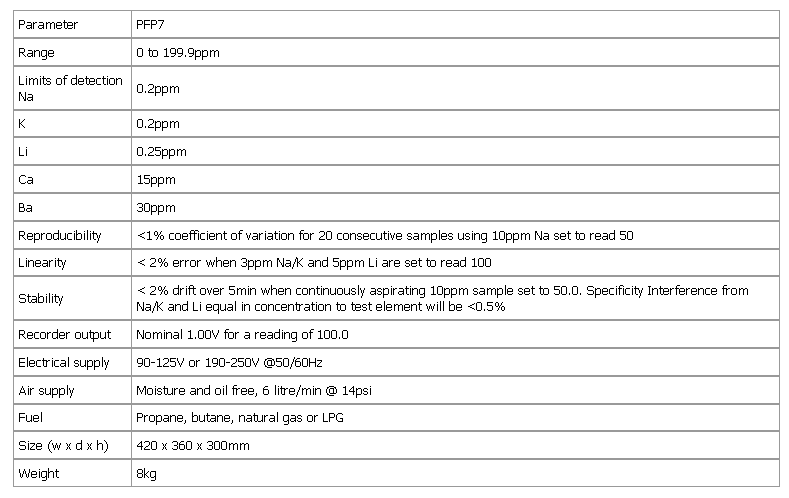 The PFP7 is a low temperature, single channel flame photometer that is designed for the routine determination of sodium, potassium, calcium, barium and lithium concentrations. The flame failure safety system makes these products ideal for use in industrial and educational environments. The use of fine and coarse sensitivity controls allows for accurate measurements each and every time.