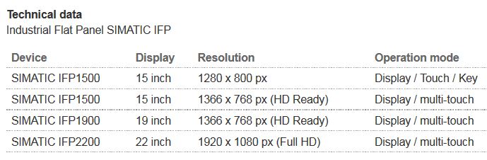 The new Industrial Flat Panel SIMATIC IFP is suitable for use as an industrial monitor with fast response times, for example, for jogging and plotting. Panels with widescreen displays are available in 15, 19 and 22 inch sizes as pure display devices or with touch screen operation. There is also a 15-inch touch version with function keys, a front USB port and a keypad.