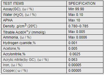 CAS.No:75-05-8 Molecular formula: CH3CN Molecular weight:41.05. Characters: mp:99.9%; moisture:<0.10%.