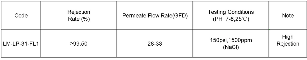 The LM-LP-31-FL1 Low Pressure TFC membranes are known for their high permeability and rejection rates, making them suitable for applications where low-pressure operation is required. Membranes have been specifically engineered to minimize energy consumption while still delivering excellent water quality.