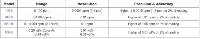 - vol%, wt% air, wt% O2, g/m3, g/Nm3 (for Model 106-H)