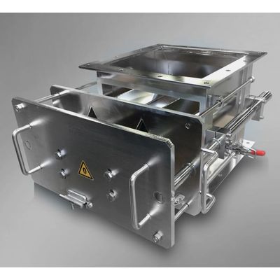 The Powermag is a heavy-duty magnetic separator designed for industries requiring high levels of metal contamination control, such as food processing, pharmaceuticals, chemicals, and plastics. Built with extremely powerful magnetic cores, the Powermag captures and removes even the finest ferrous particles from bulk materials, powders, and granules as they pass through hoppers, chutes, or pipelines.