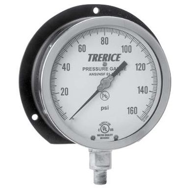 The Trerice 500X Series Industrial Gauge is designed to withstand the most demanding applications of a variety of industries. This pressure gauge has a back flanged, cast aluminum case and stainless steel ring. Wetted parts are either bronze tube with brass socket or stainless steel tube and socket.
