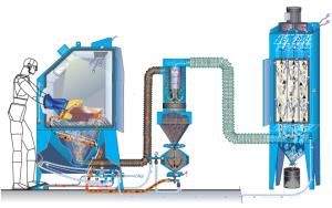 However, suction systems have limits on suction capacity and propelling heavier media. Very heavy blasting media (larger steel media) cannot be conveyed into air stream with suction blasting. Nonetheless, most industrial blast cabinets use suction systems due to their lower cost and because they work well for most applications.