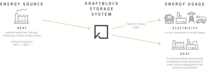 If this energy can be buffered, even “waste”-heat can play an important role in our energy transition. This is worthwhile for companies in view of the worldwide discussion and introduction of a CO2 tax, not only from an ecological but also from an economic perspective. Kraftblock is the missing link. Its power and capacity, as well as the module-based system, bring exactly those characteristics needed to make industrial heat more “renewable”.