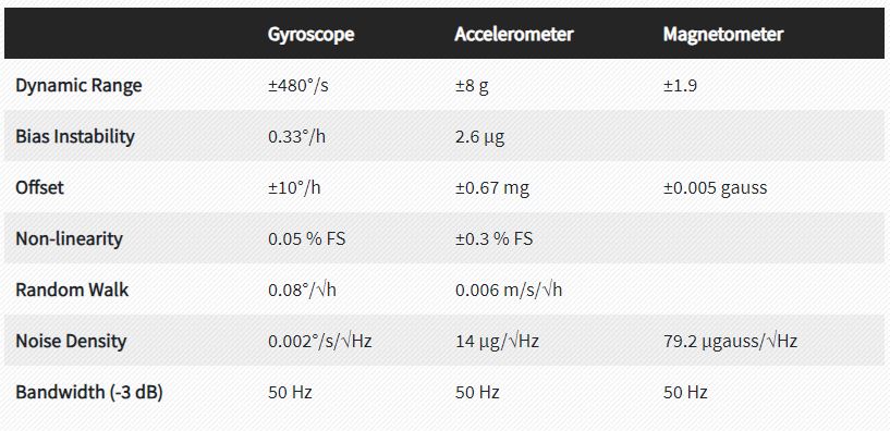 - Typical 0.0665°/√h Angle Random Walk