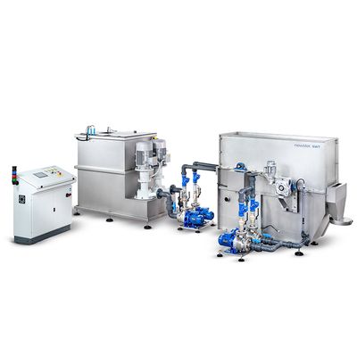 The first stage of the treatment takes place in a tank equipped with a digital level sensor system for the control of the inner plant flow rate. The pre-treatment tank is very important in order to reach the correct homogenization of the water and the correct buffer volume.