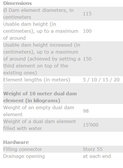 - usable dam hight up to max. ca. 100 cm