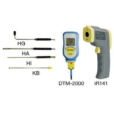 Both our hand held product thermometers offer convenient and economical operation to specific needs. The compact DTM-2000features Type K thermocouple inputs with large easy to read LCD display with °F/C and hold switches. Probe accessories offer various applications. The IR921 Infra-red thermometer reads surface temps with a 9 to 1 ratio and features °F/°C and hold buttons.