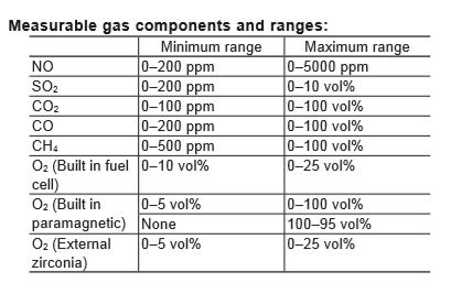 - Measuring range ratio max. 1:10 (except O2)