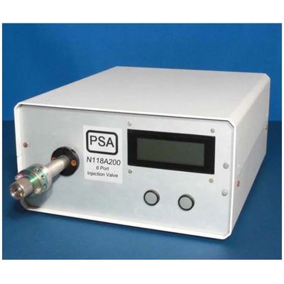 The PSA N118A200 injection valve module is designed to be used as part of an automated speciation system.The N118A200 is a stainless steel, 6 port 2 position air actuated injection valve mounted in a module for stability. The internal surface have been coated to ensure all contact surfaces are inert.The unit is used in conjunction with the PSA 10.025 Millennium Merlin or PSA 10.055 Millennium Excalibur, the PSA 20.400 Autosamler and SAMS Software for reproductible chromatograms using HPLC based speciation systems.