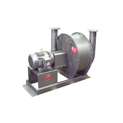 Number of Stages : 1 through 6. Inlet Connection : 5" Tube or ANSI Flange. Outlet Connection : 5" ANSI Flange. Operating Speed : 3525 RPM. Maximum Casing Pressure : 15 PSIG. Bearings : Ball, self—aligning, flange mount, Life per ABMA B-10 standard Grease. Lubrication : Grease. Impeller Diameter : 19" (483mm). Impeller Tip Speed : 18,534 FPM (5344m/min). Drive : Direct coupled (belt drive available). Drive Shaft Diameter : 1.63" at coupling (41mm). Impeller Balance : Individually dynamically balanced to ISO Standards.