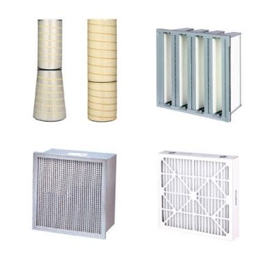 1) Cylindrical and Cylindrical + Conical Type • Description - Cylindrical : 22”, 26”, 28”, 34” - Cylindrical + Conical : 26” • Frame : Plastic, Galvanized Steel • Media : 100% Cellulose, 80/20 Blend Melt Blown, 100% Synthetic 2) V Bank and Header Type • Description - V Bank : 24”*24”*12” - Header : 24”*24”*12”, 12”*24”*12” • Air Flow : 2,000CFM • Class : F7, F8, F9 3) HEPA Filter • Description : 24”*24”*12” • Air Flow : 2,000CFM, 2120CFM • Class : E10~H14 4) Gas Turbine Pre Filter • Description : 12”*24”*4”, 24”*24”*4” • Air Flow : 2,000CFM, 2,500CFM • Media : 90% Arrestance