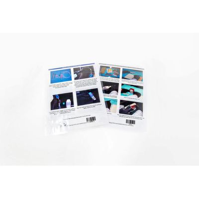 Laminated detained instructions and photos for purpose and proper use of all items in the Liquid Module (Side 1), instructions for proper record keeping, includes photos (Side 2).