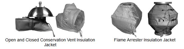 Shand & Jurs insulation jackets provide heat retention for equipment in cold weather environments. Construction of the insulating jacket is silicone impregnated woven glass cloth lining with 1`` thick fiber glass material. The jacket is easy to install and remove in the field.