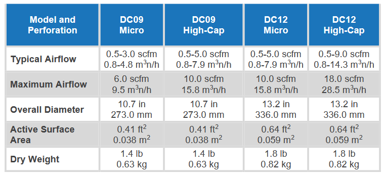 Material Features: Glass-fiber-reinforced polypropylene body for maximum chemical, temperature, and UV resistance. Premium quality membrane materials available: EPDM, silicone, PTFE Matrix, specialty polymers. High-capacity membrane option available for maximumairflow and low operating pressure, Triple-check valve design minimizes entry of liquid/solids into piping. Ideal for on / off applications. Integral Saddle Mount provides ease of installation and maintenance with maximum mechanical strength. Mounts on any pipe material (PVC, ABS, CPVC, SS, etc.). 9” disc available to fit 3”, 4”, 90 mm, and 110 mm pipe sizes. 12” disc available to fit 3” and 90 mm pipe sizes; Patented EZ-Seal™ for quick membrane installation.