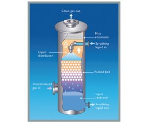 CR Clean Air`s Packed Tower Scrubber utilizes a vertical countercurrent design for highly efficient absorption of a variety of toxic gases. In addition to its extensive use in air pollution control, the Packed Tower can serve as a gas/liquid contactor in a number of process applications. Efficiencies of 99.99% and greater are not unusual for many scrubbing applications. During operation, gas flows upward through a packed bed while scrubbing liquid flows down (by gravity) over the packing material. The counter-flow design principle offers optimal mass transfer. CR Clean Air supplies cross flow and co-current flow Packed Tower designs as well.