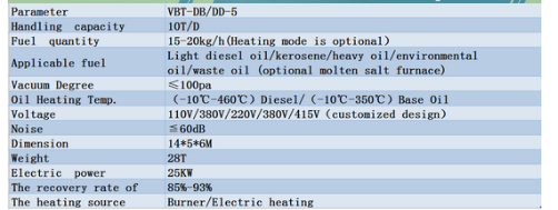 The Vbolt used oil distillation machine recycles used/waste oil into light and heavy diesel and base oil. It uses a high-speed centrifuge to separate water, and then absorbs light components such as gasoline and kerosene through a thin-film evaporator. The treated waste oil undergoes an advanced membrane distillation system to improve its gasification. The oil and gas complete a catalytic reaction in the distillation tower to produce diesel and base oil. We provide 50/H-2500L/H (1 !on-50 ton Per Day).