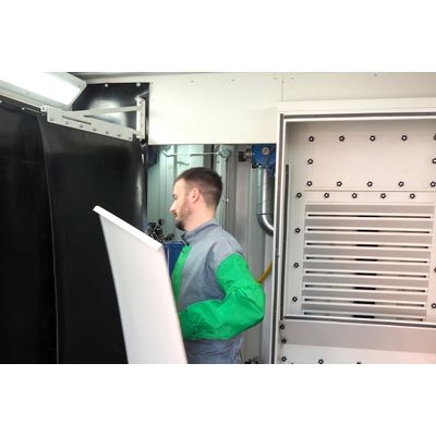 A brand-new innovation created specifically for our All-In-One Containerized Blast Rooms, this powerful, reverse-jet cartridge system works along the same principle as our external filter cartridge technology. Despite its compact size, it is powerful enough to match the air speeds of our external system, ensuring a safe and comfortable blasting environment. This module has proved so successful that we are now offering it as a cost-effective dust collection solution for smaller blast rooms.