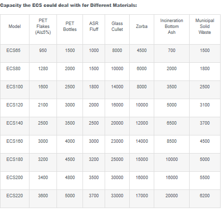 The separator could be equipped with an eccentric pole or concentric pole ECS series type. And there is a high magnetic intensity magnetic drum in prior to protect the eddy current separator.