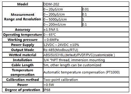 With automatic temperature compensation. Output standard Rs485 (Modbus/RTU protocol) digital signal or 4~20mA signal. The Rs485 signal is easily connected to third-party devices such as PLCs, DCS, industrial control computers, general-purpose controllers, paperless recording instruments or touch screens. Parameter settings are more convenient and faster. The calibration function provides a quick and easy way to calibrate. Real-time data transmission allows you to get timely and accurate data on monitoring water bodies.