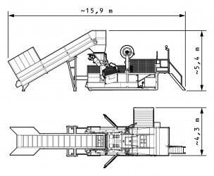 The small footprint of this combined baling & wrapping system (15.9 m x 4.3 m ) and its low operational height (5.4 m), plus a mere max 8 hour installation time, make for flexibility and easy deployment.