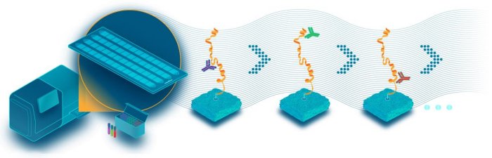 The protein array is loaded onto the platform where fluorescent affinity-probes flow over the array to bind short, defined protein motifs and binding events are measured. Since samples are not degraded, they can be washed and probed repeatedly with a variety of unique affinity-probes, each designed to target specific motifs on multiple proteins. Every new cycle provides unique information and increases the resolution of individual protein identity. Using this approach, the platform aims to sensitively measure tens of billions of molecules across hundreds of cycles in just one day.