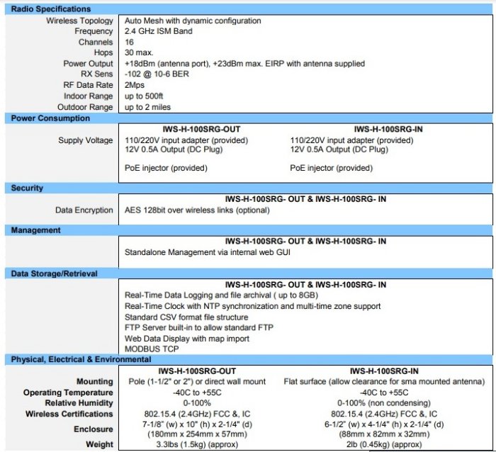 The Intelligent Wireless System (IWS) nodes comprise of a range of distributed wireless products from Plexus Controls providing advanced supervisory, control and data acquisition (SCADA) functionality for commercial and industrial applications. With `out the box` auto mesh wireless functionality, IWS nodes can be easily installed at a remote location and connected to standard sensors, supporting 4-20mA, 0-5V, 0-10V, HART, temperature, pressure and many other interfaces. Either through a direct wireless connection or automatically hopping through a series of repeater IWS nodes, the sensor data is relayed back to the IWS Hub for termination over Ethernet to the IWS Management Server application for display, logging and alarm management.