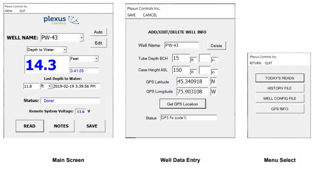 The Plexus Controls Precision Level Reader System (PLR) permits field staff to use the portable system to take water depth measurements from sites with depth measurement tubes already installed, avoiding well cap removal and exposure to potentially harmful gasses. Using an internal air pump, the PLR pressurizes a hose that is installed permanently inside the well and calculates the water depth from the pressure (or differential pressure) value. The system offers a host of user features to speed up the read and data logging process such as local save and recall of well site information (casing height ASL, tube depth), and provides a water level calculation of height above sea level.