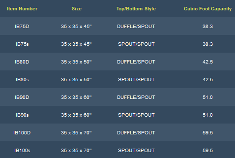 All bags are produced from virgin resins and feature a 2500 pound safe working load at 5:1 safety factor.
