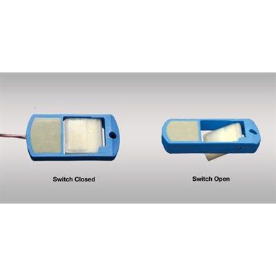 - Dry contact normally closed reed switch opens to signal the presence of liquid