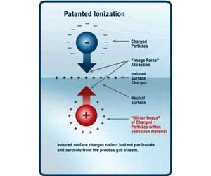 - Combines established principles of electrostatic particle charging, image force attraction, inertial impaction, and gas absorption to collect submicron solid particles, liquid particles, and noxious and malodorous gases simultaneously