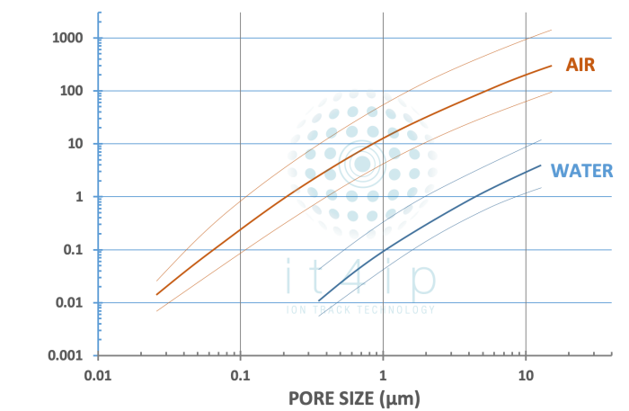 Selection of pore size and of pore density, combined to the choice of filter thickness, enable the manufacturing of track-etched membrane filters characterise by a wide range of water and of air flows.