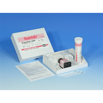 Pack Size: box of 100 strips & reagent. Hazard Class /UN Number: Not Restricted. Storage Temp: Room Temperature. Test sticks and reagents for the semi-quantitative determination of iron (Fe 2+ /Fe 3+ ) in solutions. Gradation of scale: 0-5-20-50-100-250-500-1000 mg/l Fe 2+/3+ white to dark red. Some heavy metals, when present in larger concentrations, can cause slight discolorations. These can be eliminated by addition of a small quantity of cadmium powder.