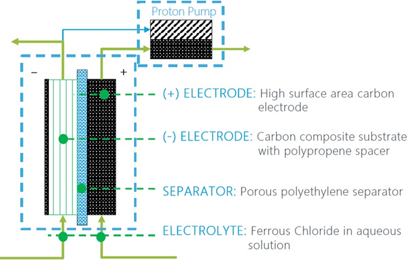 Zero degradation over 20,000 cycles: Iron flow batteries circulate liquid electrolytes to charge and discharge electrons via a process called a redox reaction. The word “redox” is a contraction of the words “reduction,” which represents a gain of electrons, and “oxidation,” or a loss of electrons. ESS uses the same electrolyte on both the negative and positive sides of the equation, eliminating cross-contamination and degradation. This is why ESS chemistry remains stable for an unlimited number of deep-cycle charge and discharge cycles.