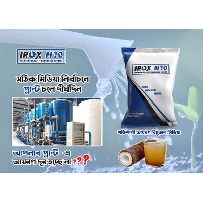 Irox N70 is a strong Iron Removal Media for Water and Waste Water Treatment. Irox N70 is an inorganic compound which is MnO2 formula. The color of Irox N70 can be brown or black. Irox N70 is also used a a pigment and as a precursor to other manganese components. The importer of Irox N70 in Bangladesh is Green Dot Limited ( www.greendotbd.com). It is available at Green Genesis Engineering Limited ( www.greengenesisbd.com ) , Heron Water Purifier ( www.heronwaterpurifier.com ) and The Water Shop bd ( www.watershopbd.com )