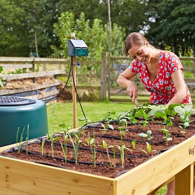 Alternatively the connectors provided can be used to connect up to 6m of seep hose to the PUMP. The seep hose must be kept level and can be staked into position. This is useful for beds and rows of vegetables. It is possible to lay several lengths of seep hose but just connect the lengths most needing watering, or move the connection on each day to provide watering for 2 – 7 beds/rows from one PUMP depending on water requirements.