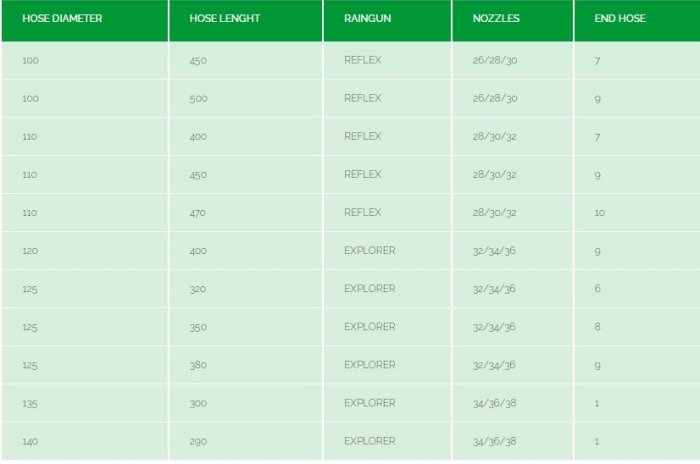 • Set of nozzles EXPLORER raingun from Ø 28 to Ø 40
